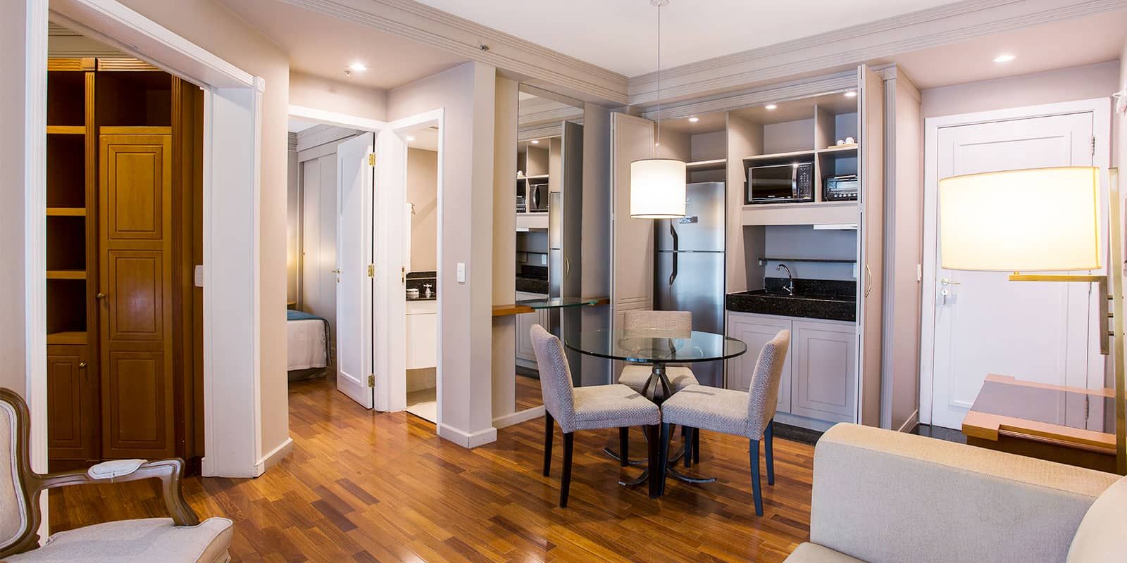 Oferecemos uma gama completa de serviços voltados ao conforto e à conveniência dos nossos moradores. Limpeza diária, troca de enxoval, café da manhã, manutenção, segurança, equipe bilíngue 24h e áreas como living floor, piscina, academia e sauna garantem que cada dia seja vivido com o máximo de bem-estar e tranquilidade.